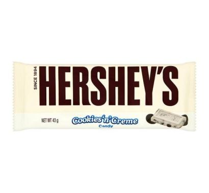 White Chocolate Flavoured Candy (82%) [Sugar*; Vegetable Oil (Palm, Shea, Safflower and/or Sunflower Oil); Nonfat Milk Powder; Corn Syrup Solids*; Milk Fat; Emulsifiers, Soya Lecithin* (E322), Polyglycerol Polyricinoleate (E476); Artificial Flavour, Vanillin; Antioxidant, Tocopherols (E307)], Cookies (18%) [Wheat Flour (Gluten); Sugar*; Partially Hydrogenated Vegetable Oil (Soybean* and/or Cottonseed Oil); Cocoa Processed with Alkali; Whey Powder (Milk); Cocoa Mass, High Fructose Corn Syrup; Raising Agent, Sodium Bicarbonate (E500); Salt; Emulsifiers, Soya Lecithin* (E322), Natural & Artificial Vanilla Flavour; Caramel Colour (E150d)], *Produced from Genetically Modified Sugar Beets, Corn, and Soya Beans